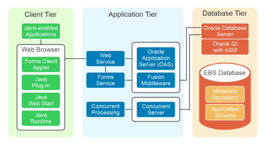 Oracle ERP application architecture provides a robust, scalable, and secure framework that supports end-to-end enterprise operations across finance, procurement, supply chain, projects, and human capital management. Built on a proven multi-tier model, the architecture separates presentation, application logic, and data management layers to ensure optimal performance, flexibility, and maintainability. This structured approach enables organizations to run mission-critical workloads while maintaining high availability and seamless user experiences.
